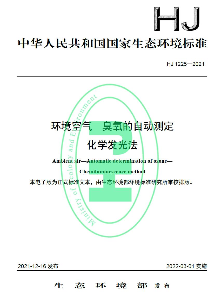 环境空气 臭氧的自动测定-化学发光法(环境标准HJ 1225-2021)