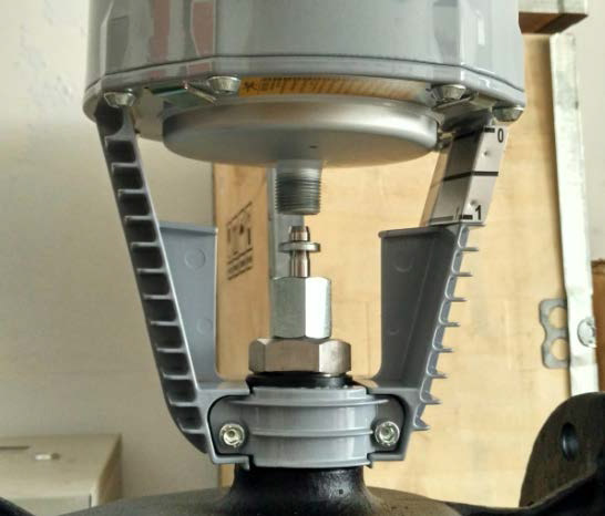 第三步:将执行器安装在阀体上,此时执行器不可固定死,能前后晃动为。